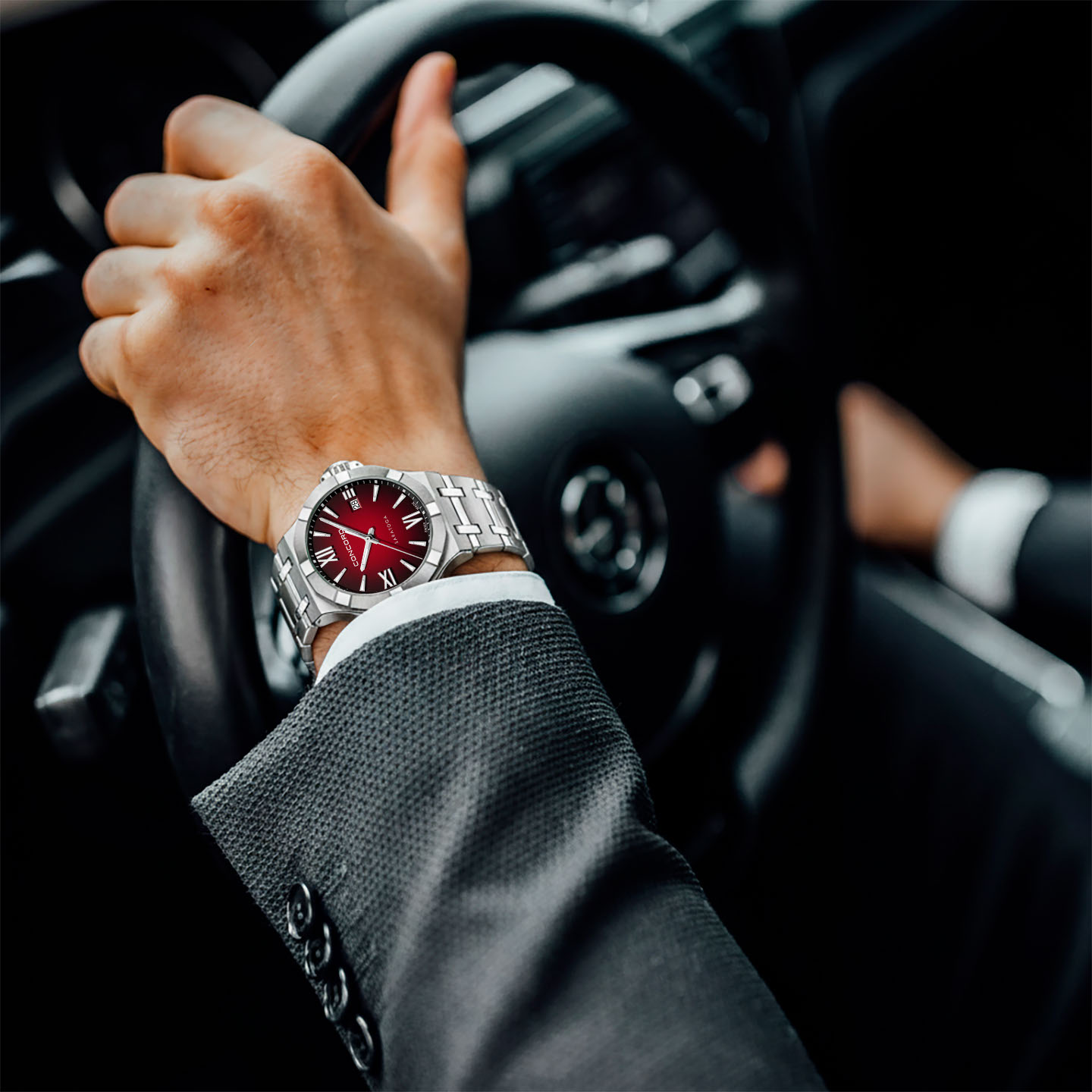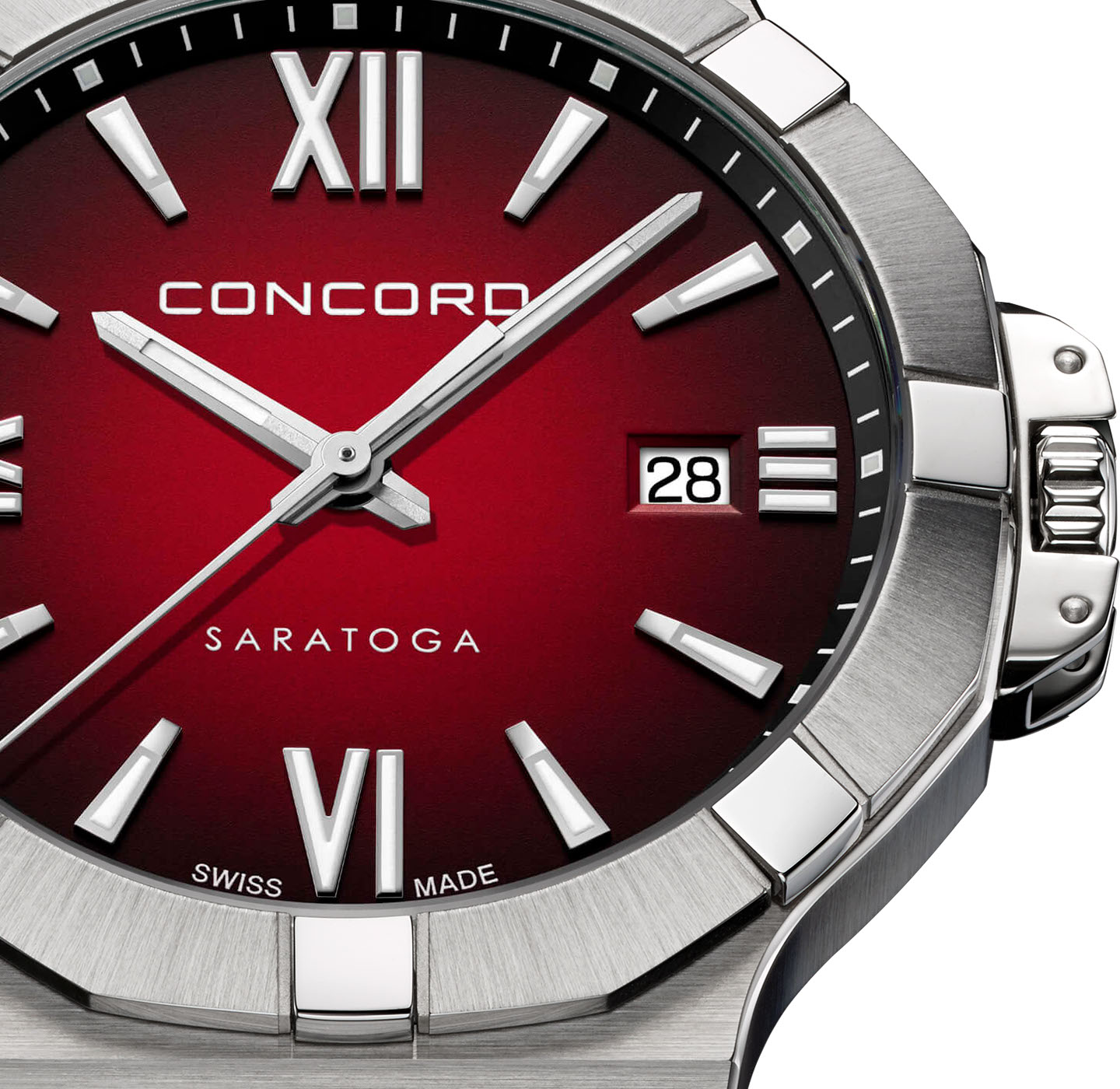 個性と魅力を手元に添える赤色の文字盤。 コンコルド・サラトガのスポーティーなデザインと融合することで、洗練されたドレッシーな雰囲気を生み出します。 真紅ではなくグラデーションを採用しているため、ビジネスシーンでも悪目立ちせず、活動的でエネルギッシュな印象を与えます。 フォーマルからカジュアルまで、幅広いシーンで装いを格上げするアクセントとなり、素敵な時間を刻み続けます。